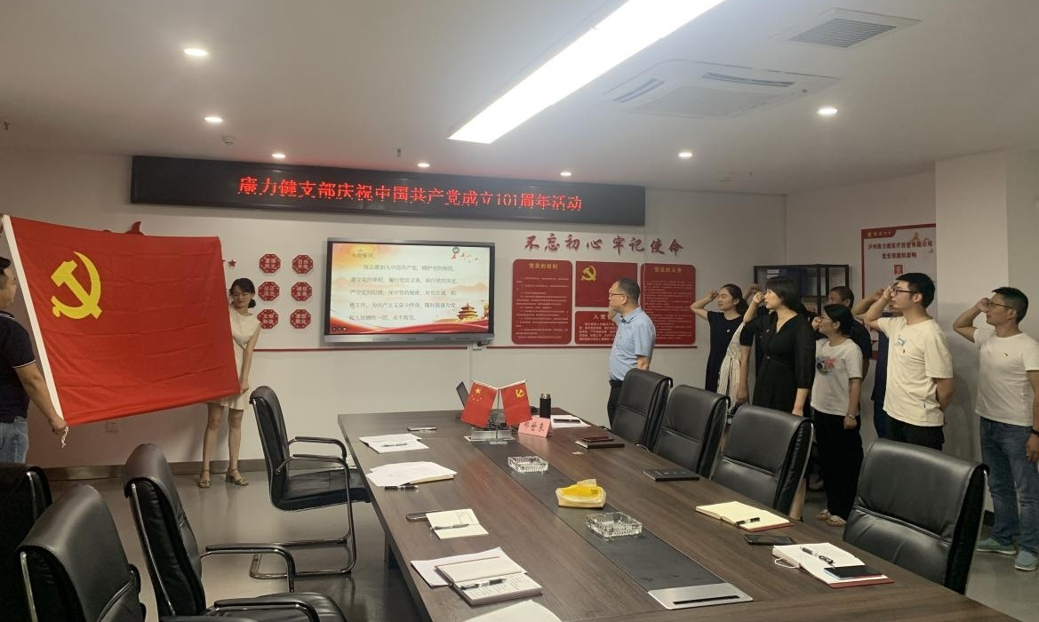為慶祝中國共產(chǎn)黨建黨 101 周年, 7 月 1 日, 康力健黨支部開展 “七一” 主題黨日活動, 通過唱紅歌、 重溫入黨誓詞、 支部書記講黨 課等多種形式, 教育引導黨員干部不忘初心, 知行合一, 以實際行動 迎接黨的二十大勝利召開。