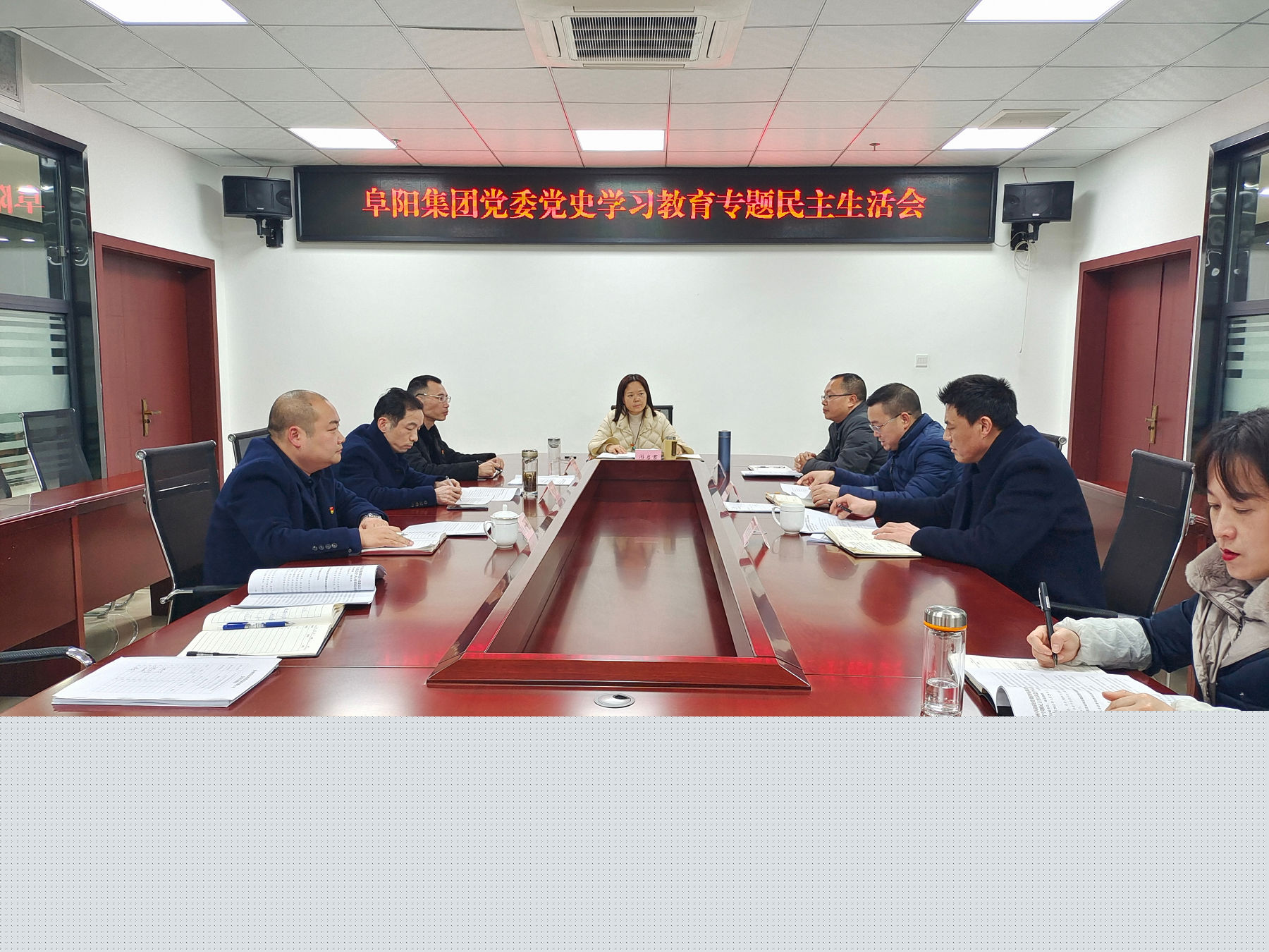 2022年1月25日下午,阜陽集團黨委召開黨史學習教育專題民主生活會。集團黨委書記、董事長游啟君主持會議,黨委全體成員出席會議。
