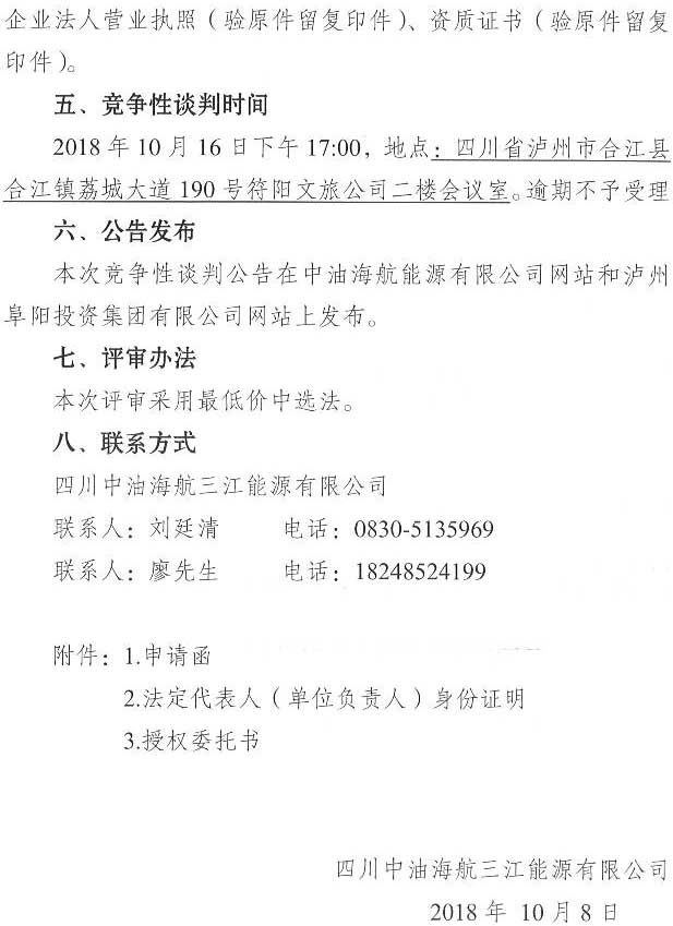 競(jìng)爭(zhēng)性談判公告:合江臨港工業(yè)園區(qū)LNG清潔能源推廣應(yīng)用示范項(xiàng)目水土保持報(bào)告單位競(jìng)爭(zhēng)性談判公告