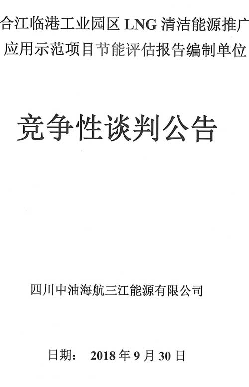 競(jìng)爭(zhēng)性談判公告:合江臨港工業(yè)園區(qū)LNG清潔能源推廣應(yīng)用示范項(xiàng)目節(jié)能評(píng)估報(bào)告編制單位競(jìng)爭(zhēng)性談判公告