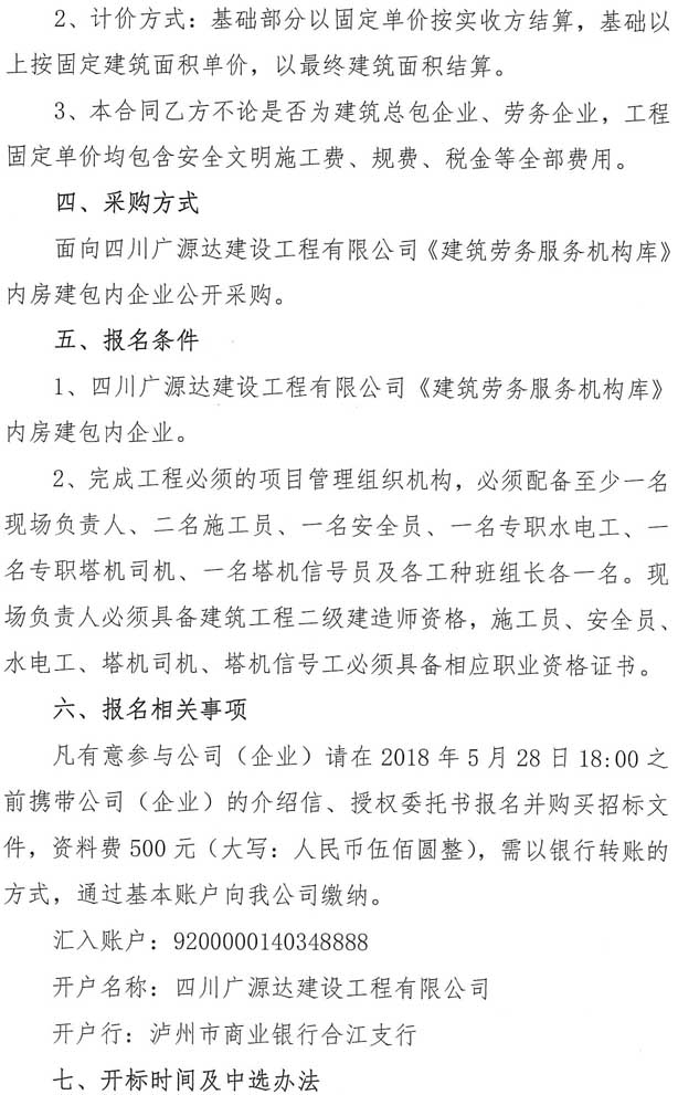 采購公告:四川廣源達建設工程有限公司合江縣馬街向化廠舊城改造項目勞務分包企業(yè)采購公告