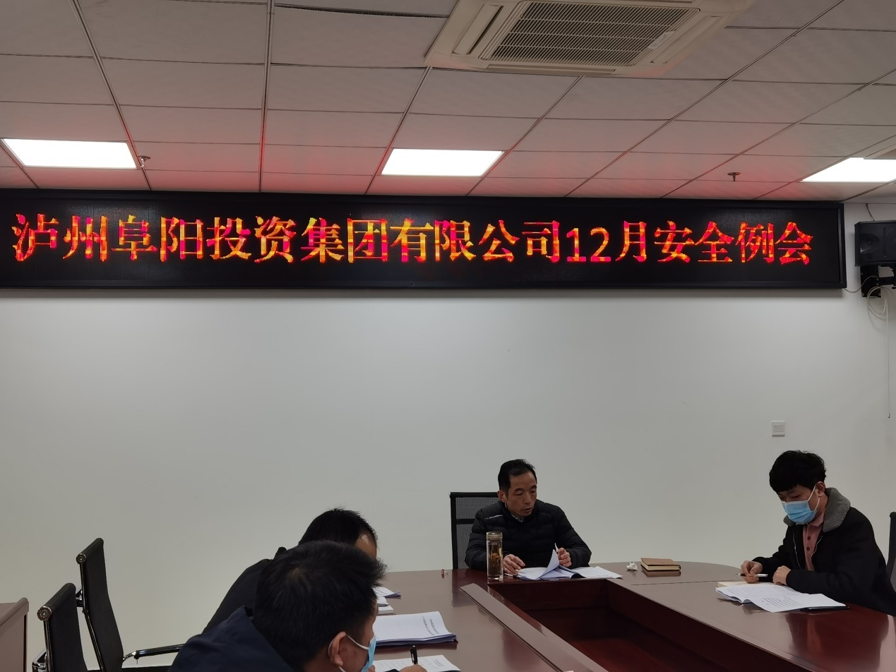2021 年 12月22日,瀘州阜陽投資集團(tuán)有限公司召開了12月份安全生產(chǎn)例會,胡天華副總經(jīng)理帶領(lǐng)大家學(xué)習(xí)了近期安全生產(chǎn)會議精神,并觀看了火災(zāi)案例警示教育片。會上胡總要求各級公司做好平時安全防范工作,把安全生產(chǎn)工作落實到最小單元,落實到操作一線,真正做到知責(zé)履責(zé)、擔(dān)責(zé)盡責(zé)。
