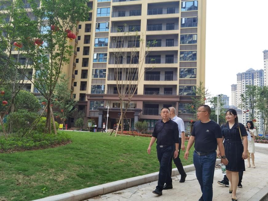 2021年5月11日,財(cái)監(jiān)局局長楊向前率隊(duì)調(diào)研鑫晟學(xué)府項(xiàng)目建設(shè)銷售情況。調(diào)研組一行實(shí)地查看了中庭建設(shè)情況、樣板間裝修情況,并詳細(xì)了解了項(xiàng)目銷售情況。楊局強(qiáng)調(diào):鑫晟學(xué)府項(xiàng)目作為縣國企第一個(gè)房開項(xiàng)目,一定要及時(shí)完成建設(shè)銷售工作,體現(xiàn)經(jīng)濟(jì)效益。