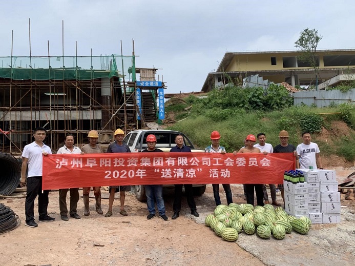 近日,合江持續(xù)高溫,為保障一線人員的身體健康,確保各項生產工作安全有序開展,8月11日,集團公司黨委委員、工會主席袁健,帶領集團黨群紀檢工作部、綜合部先后深入鑫晟學府、殯儀中心、龍掛山景區(qū)等十多個項目建設現(xiàn)場,看望慰問奮戰(zhàn)在一線的工作者,為他們送去清涼物資和關心關愛。