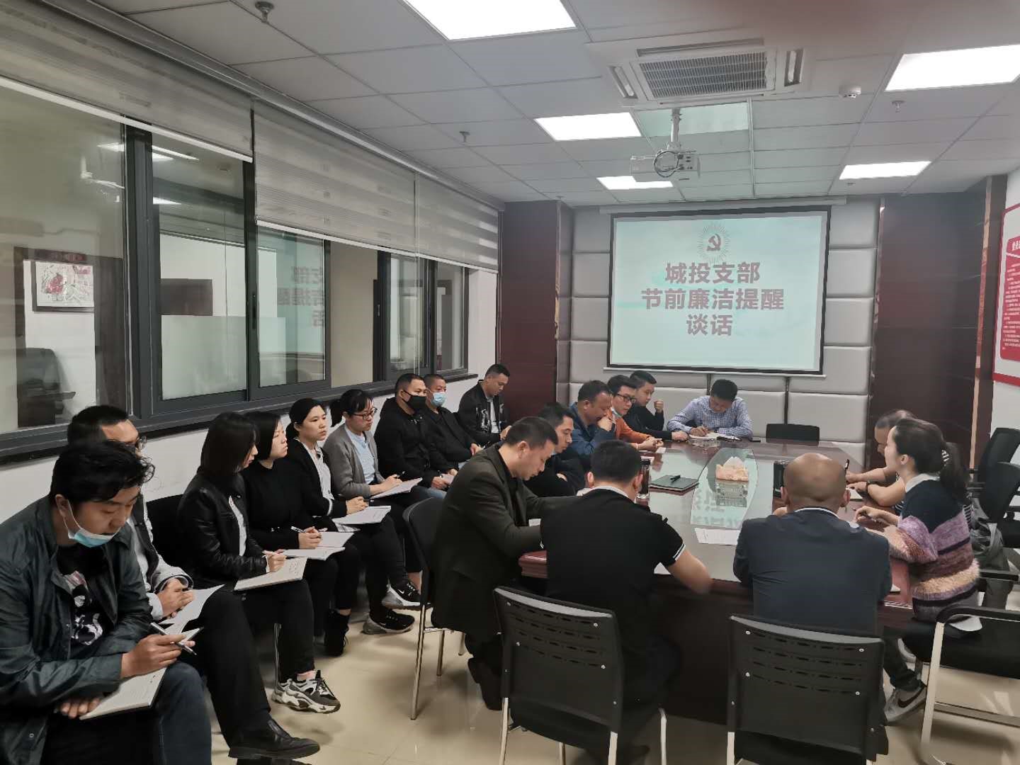 2020年4月27日上午,城投支部副書記譙棣升召集全體黨員、入黨積極分子開展《中華人民共和國國家安全法》專題學(xué)習(xí)暨節(jié)前廉潔提醒談話。會上,譙棣升從嚴(yán)于律己、以身作則、管好親屬等方面要求全體同志繼續(xù)樹立廉潔自律好風(fēng)氣,爭做模范黨員好先鋒。