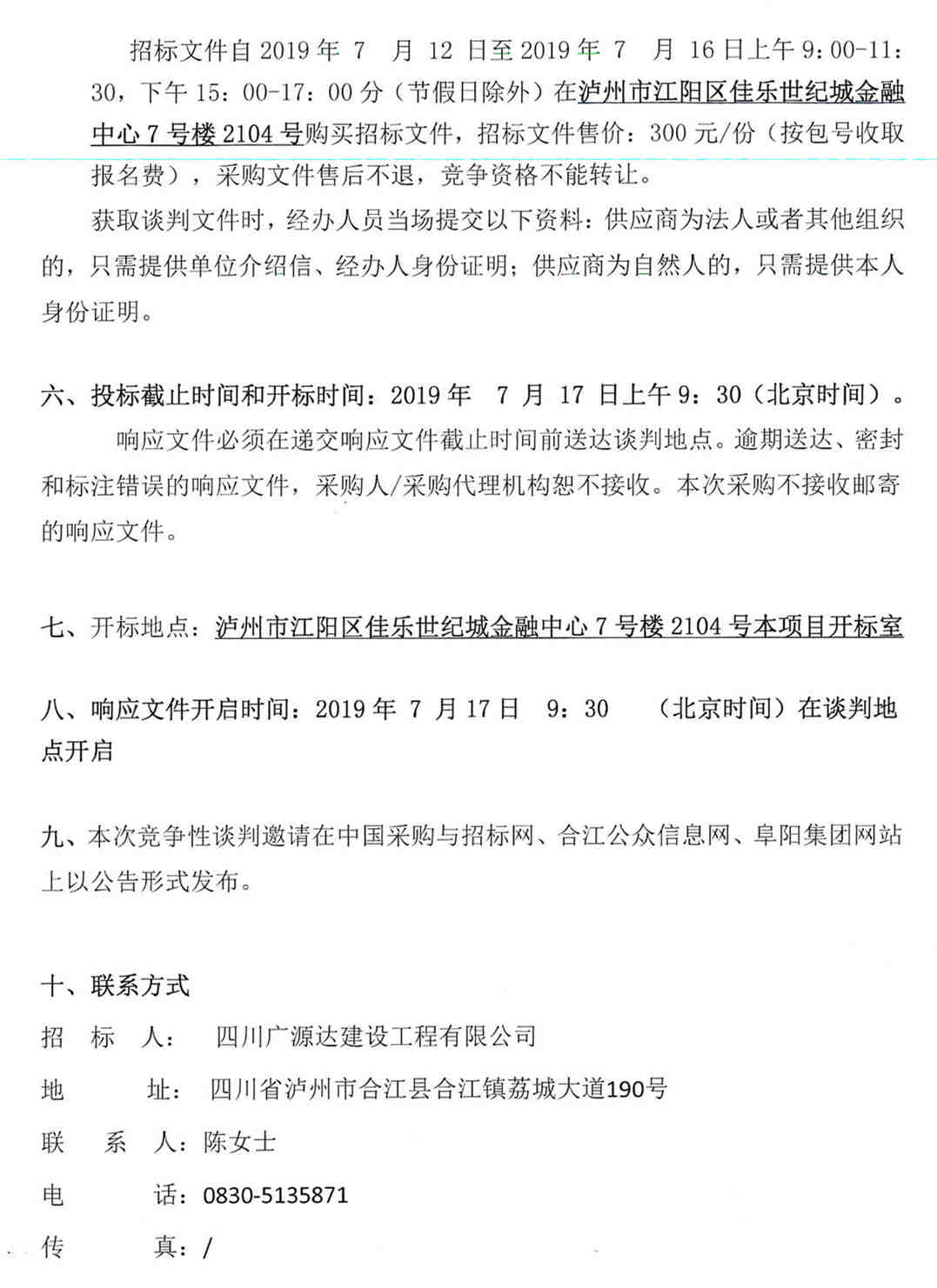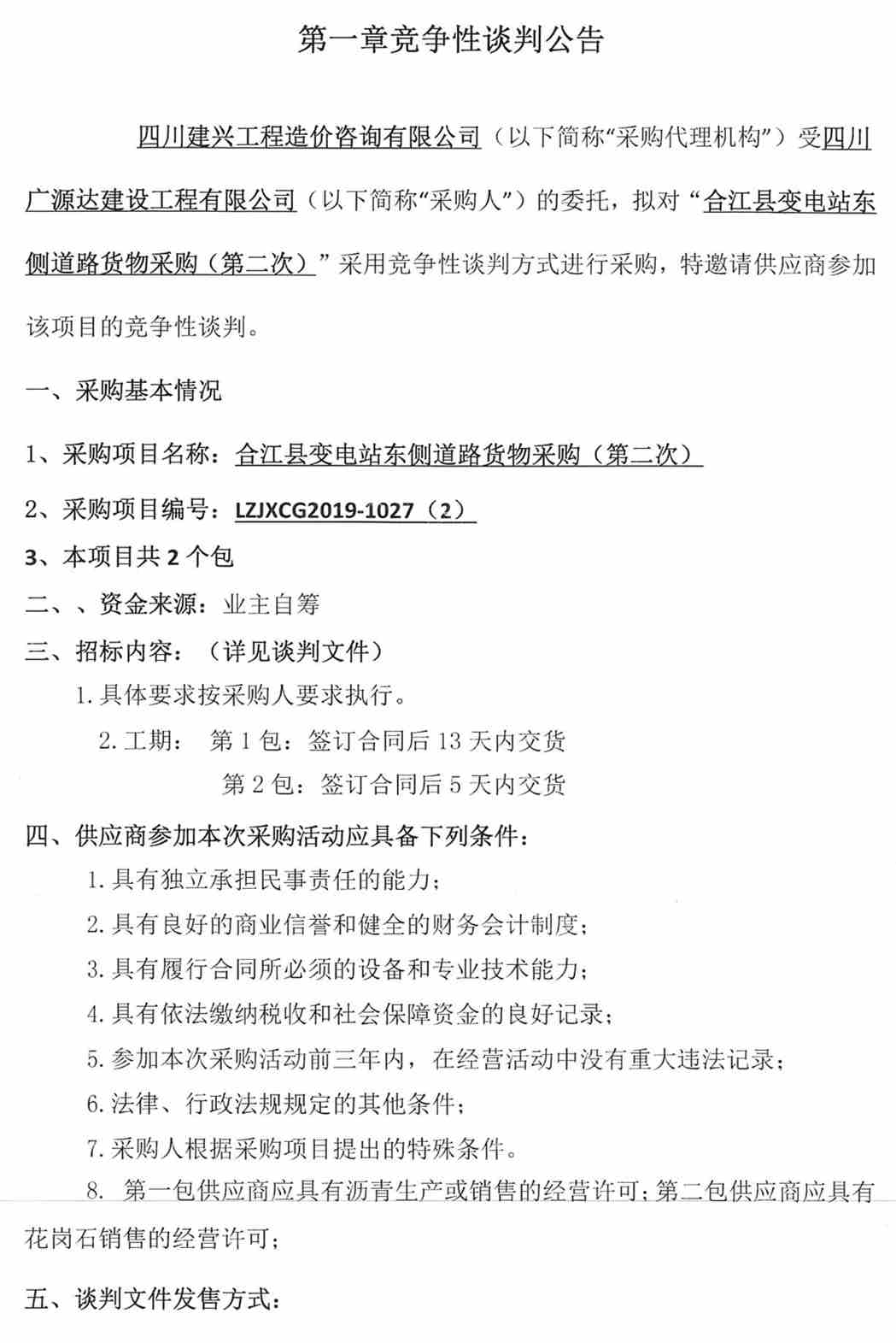 四川廣源達建筑工程有限公司合江縣變電站東側(cè)道路貨物采購公告(第二次)