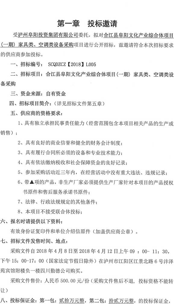 投標邀請:合江縣阜陽文化產(chǎn)業(yè)綜合體(一期)項目家具類、空調(diào)類設備采購