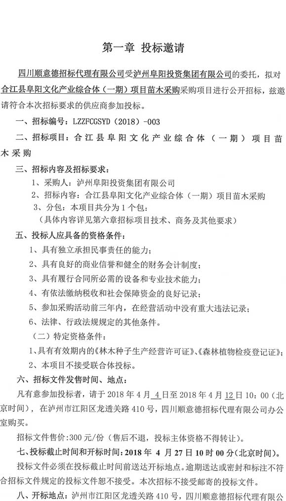 投標(biāo)邀請(qǐng):合江縣阜陽(yáng)文化產(chǎn)業(yè)綜合體(一期)項(xiàng)目苗木采購(gòu)