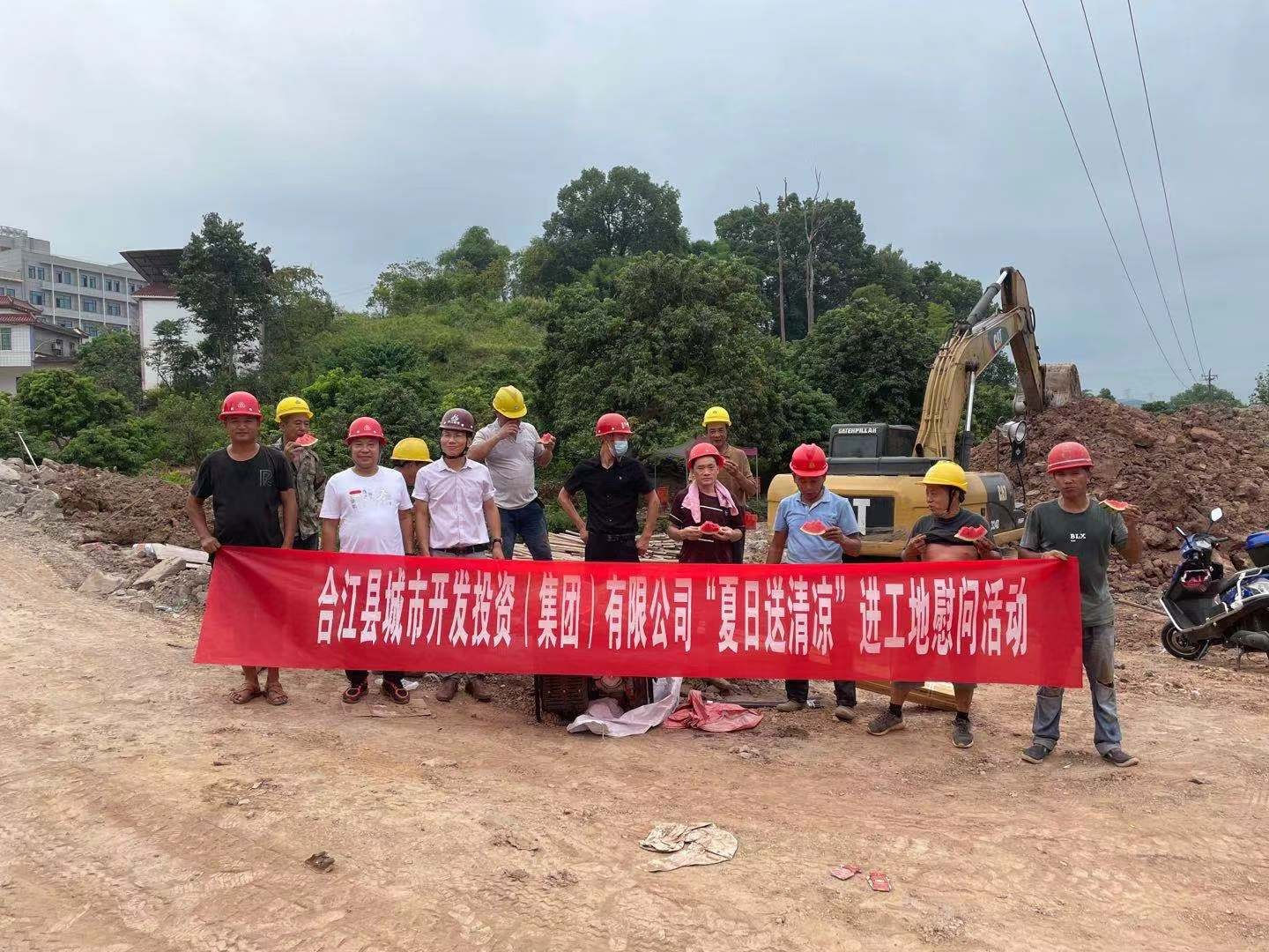 炎炎酷暑,天氣持續(xù)高溫,為切實做好戶外一線職工防暑降溫工作,2021年8月7日,合江縣城市開發(fā)投資(集團)有限公司開展“夏送清涼暖人心凝心聚力鼓干勁”活動,合江縣城市開發(fā)投資(集團)有限公司董事長兼總經(jīng)理鞠志良、副總經(jīng)理陳磊、工程部部長陳云峰等領(lǐng)導(dǎo)為高溫下堅守我司建筑崗位等戶外一線職工送去夏日清涼,送去公司的關(guān)懷。