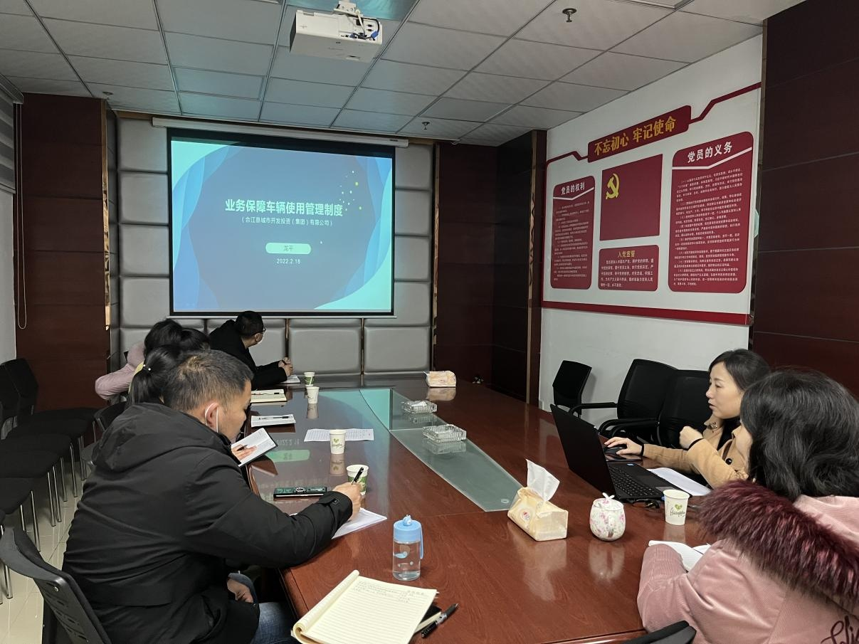 2022 年 2 月 18 日 下 午 , 城 投 公 司 組 織 各 部 門(mén) 及 下 屬 子 公司開(kāi)展業(yè)務(wù)保障車(chē)輛使用管理專題培訓(xùn), 公司各部門(mén)及下 屬子公司負(fù)責(zé)人參會(huì)。 本次培訓(xùn)進(jìn)一步規(guī)范了業(yè)務(wù)保障車(chē)輛 的日常管理, 提高了職工的安全意識(shí), 加強(qiáng)了公司的安全管 理工作。