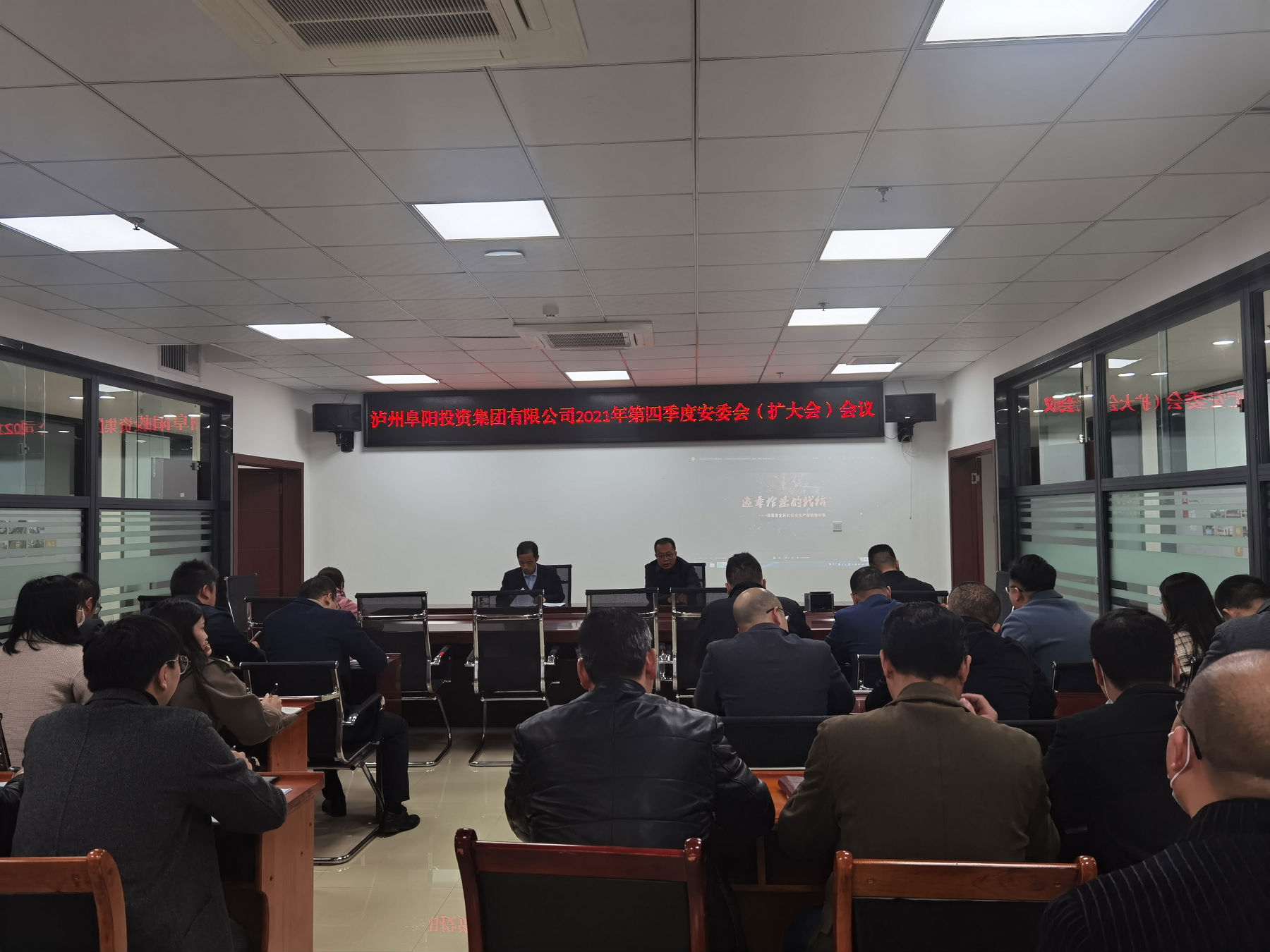 2021 年 10月28日,瀘州阜陽投資集團有限公司召開第四季度安委員會(擴大會)會議,會議由集團副總經(jīng)理胡天華主持,總經(jīng)理任東財出席,各下屬公司、代管公司安全分管領(lǐng)導(dǎo)及安全員參加。