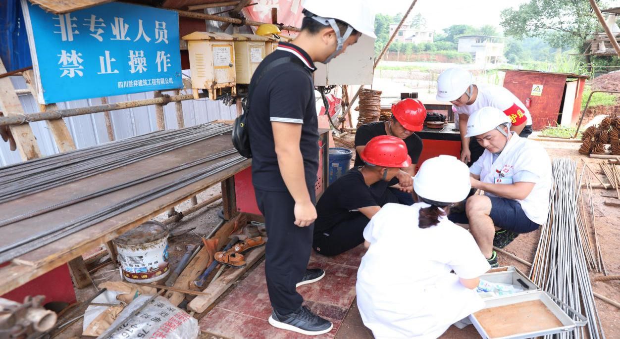 演練模擬龍掛山在建項(xiàng)目施工過程中一名鋼筋工人在鋼筋制作中手臂不慎擦劃傷,項(xiàng)目部立即進(jìn)行緊急救援。演練總體設(shè)置三項(xiàng)課時,一是現(xiàn)場傷員救助,二是應(yīng)急救援的后勤保障,三是應(yīng)急救援知識的講解。