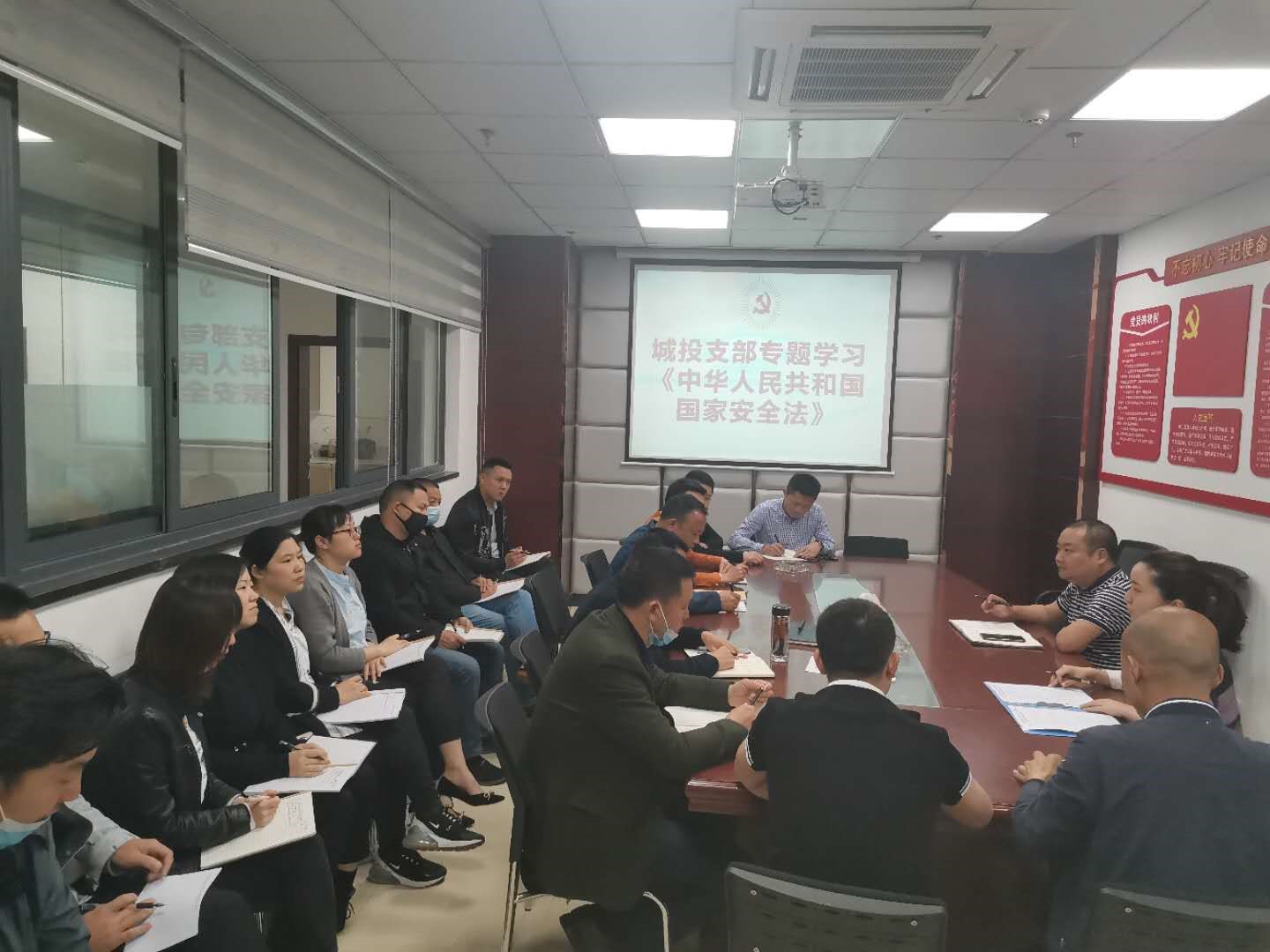 2020年4月27日上午,城投支部副書記譙棣升召集全體黨員、入黨積極分子開展《中華人民共和國國家安全法》專題學(xué)習(xí)暨節(jié)前廉潔提醒談話。會上,譙棣升從嚴(yán)于律己、以身作則、管好親屬等方面要求全體同志繼續(xù)樹立廉潔自律好風(fēng)氣,爭做模范黨員好先鋒。
