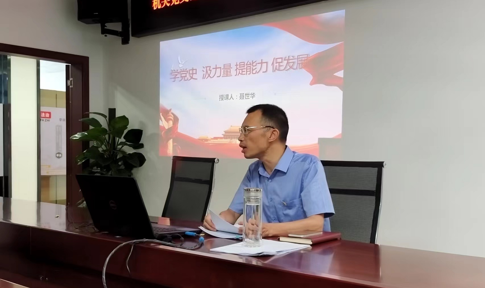 6 月 30 日下午, 機關黨支部組織本部黨員和員工群眾開展慶祝中 國共產(chǎn)黨成立 101 周年主題黨日活動, 活動由黨支部書記聶仕華主持。