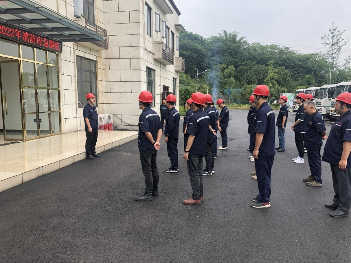 2022 年 5 月 27 日, 城投子公司匯鑫環(huán)保公司下屬的合江縣生 活垃圾壓縮中轉(zhuǎn)站舉行了 “ 預(yù)防為主, 安全第 一 ” 為主題的消防安全 應(yīng)急演練。