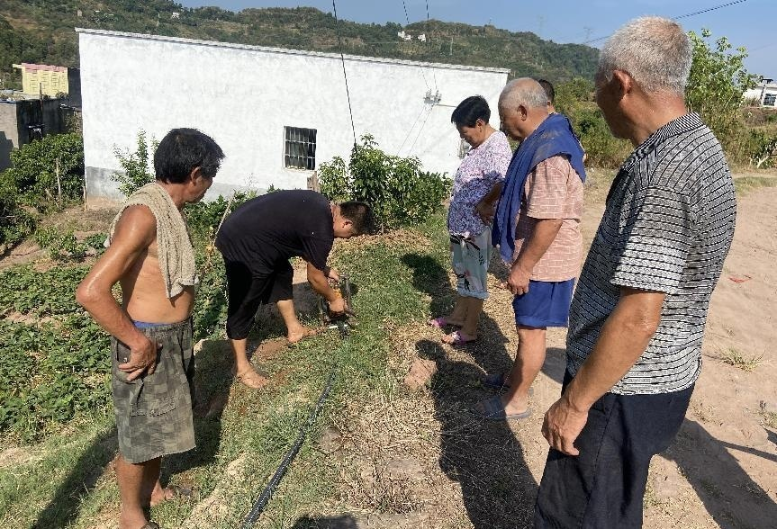 大橋片區(qū)負(fù)責(zé)人李燃帶隊(duì)檢查真龍鎮(zhèn)太陽(yáng)能提灌站管線