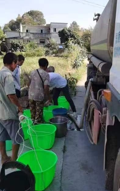 8 月 21 日江北片負(fù)責(zé)人任椿汲組織一線員工對(duì)白米鎮(zhèn)向陽(yáng)村進(jìn)行送水服務(wù)